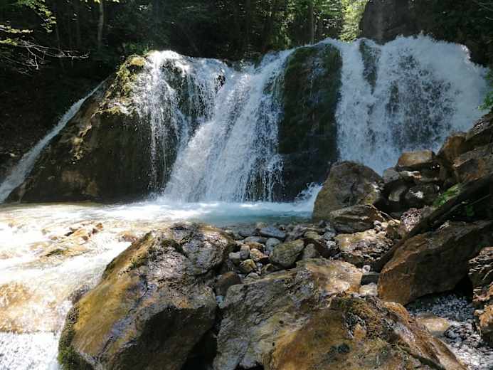 Eine Besonderheit dieser 2. Etappe des Julius-Kugy-Dreiländerweges in 30 Tagen ist die mehrmalige Begegnung mit Wasser: Bodenbach mit 2 Wasserfällen, dann der Loiblbach mit einem rechten Zufluss, dann die Ribnitza und schließlich der Hainschbach mit einem Wasserfall (entlang des Wasser-Erlebnisweges).