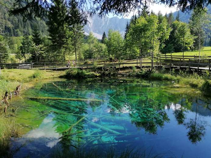 Vom Gh. Sereinig entlang des Panoramaweges Südalpen (PWS) den Naturlehrpfad Tschaukofall zum Gh. Deutscher Peter wählen (also ohne Abkürzung!).