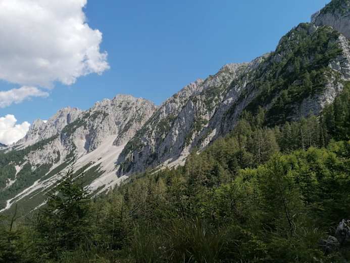 (3 Alternativen und 7 Pausen, siehe auch: Julius Kugy Alpine Trail – Etappen-Wegbeschreibung)