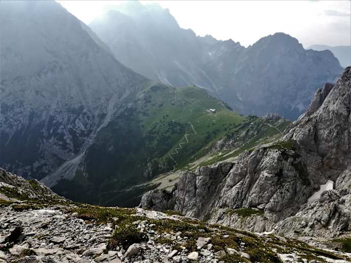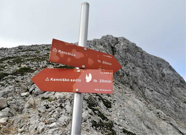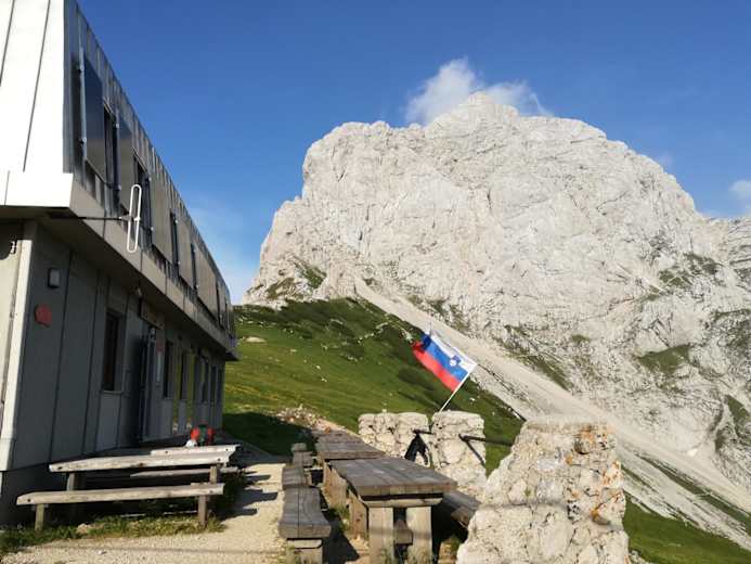 Falls keine Taxilösung gefunden werden kann - ab 8/2019 ist neben der abgebrannten Hütte Kocbekov dom na Korošici eine Notunterkunft möglich, zumal für die Wegstrecke zum Etappenziel Kamniška koča noch ca. 2 1/2 Stunden erforderlich sind!