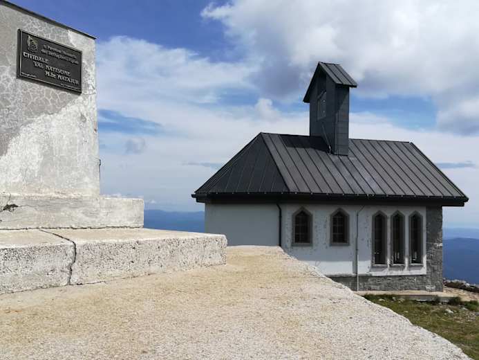 Gedenkstätte mit Kirche am Mt. Matajur Foto: Dr. Valentin Wulz Wanderzeichen am Aussichtsberg Mt. Matajur Foto: Dr. Valentin Wulz Bildergalerie (9)