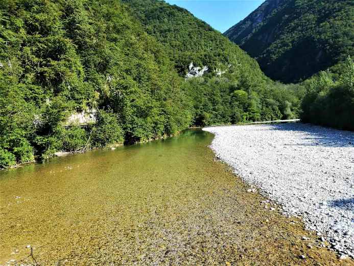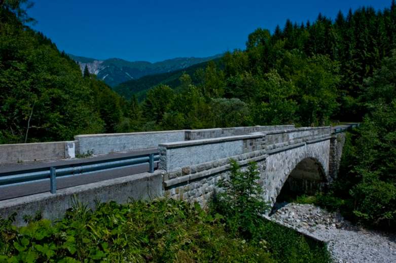 Wir durchwandern an der Südseite des Naturparks das A. V. Valli del Natisone - dieser Weg/Pfad führt uns stets aufwärts gehend nach Montefosca. In der weiteren Folge erreichen wir mit der Weg-Nr. 744 in der Comune di Taipana den Hauptort Prossenicco (Kirche, Museum, Einkauf) und danach die interessante Grenzbrücke P.te Vittorio Emanuele. Schließlich erreichen wir über das Gebiet der Tanacertegna das Etappenziel Montemaggiore/Gh. - wir sind damit in den Alpi Guilie/Julischen Alpen auf italienischem Gebiet eingetaucht - sie sind Teil der Alpi Sud-orientali, den Südostalpen.