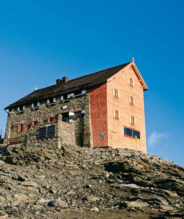 Bei der Ladinzenhütte sich vom Hüttenwirt/von der Hüttenwirtin beraten lassen, ob der Alpinweg oder eine Alternative gewählt werden soll.