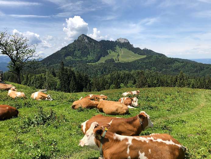 Die Chiemsee-Alpenland Tour ist eine viertägige SalzAlpenTour in den Chiemgauer Bergen. Ausgangs- und Endpunkt der Wanderung ist Samerberg. Die zweite Etappe führt von Nußdorf am Inn bis zur Hochries. Die hier vorgestellte Route ist die gemütlichere Variante von zwei Möglichkeiten.