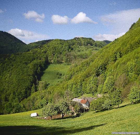 Quer über eine Mulde, dann rechts am Hof Gaissteiner, 690 m, vorbei und wieder in den Wald. Foto: Franz Hauleitner, Rudolf Hauleitner, Rother Bergverlag Bildergalerie (4)