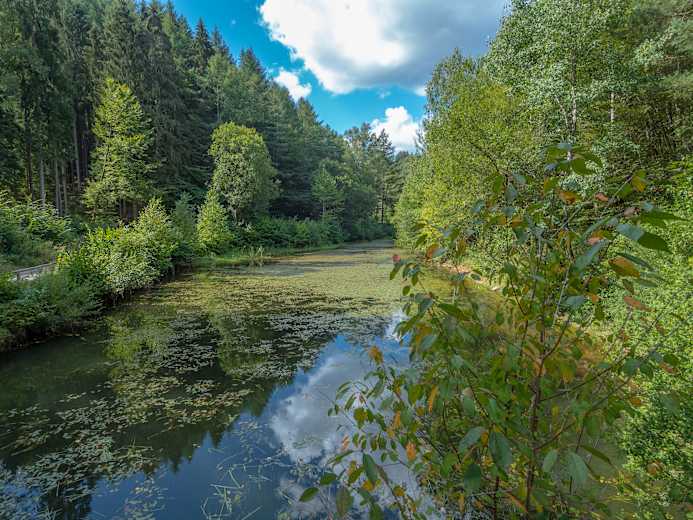Auf dem Rentnerpfad erreicht man den Melkenplätzer Weiher im Storrbachtal. Entlang des ehemaligen Triftkanals wandert man zur Philippsklause. Unterwegs kommt man am Friedrichshäuschen mit seinen Sitzmöglichkeiten vorbei.