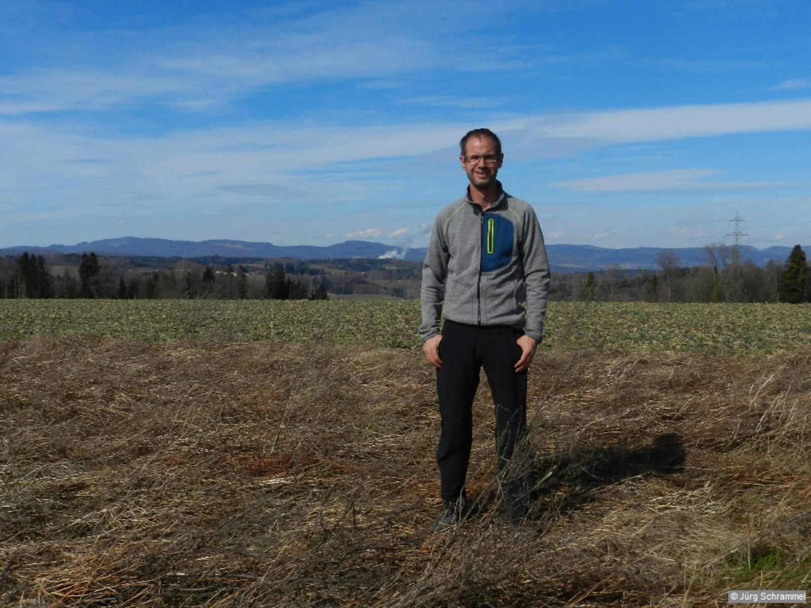 Vorbei an zwei Waldhütten und über die flache Oberlegi zum Stübisberg, von wo unser Blick ein erstes Mal zu den Alpen schweift. Foto: Jürg Schrammel, Rother Bergverlag