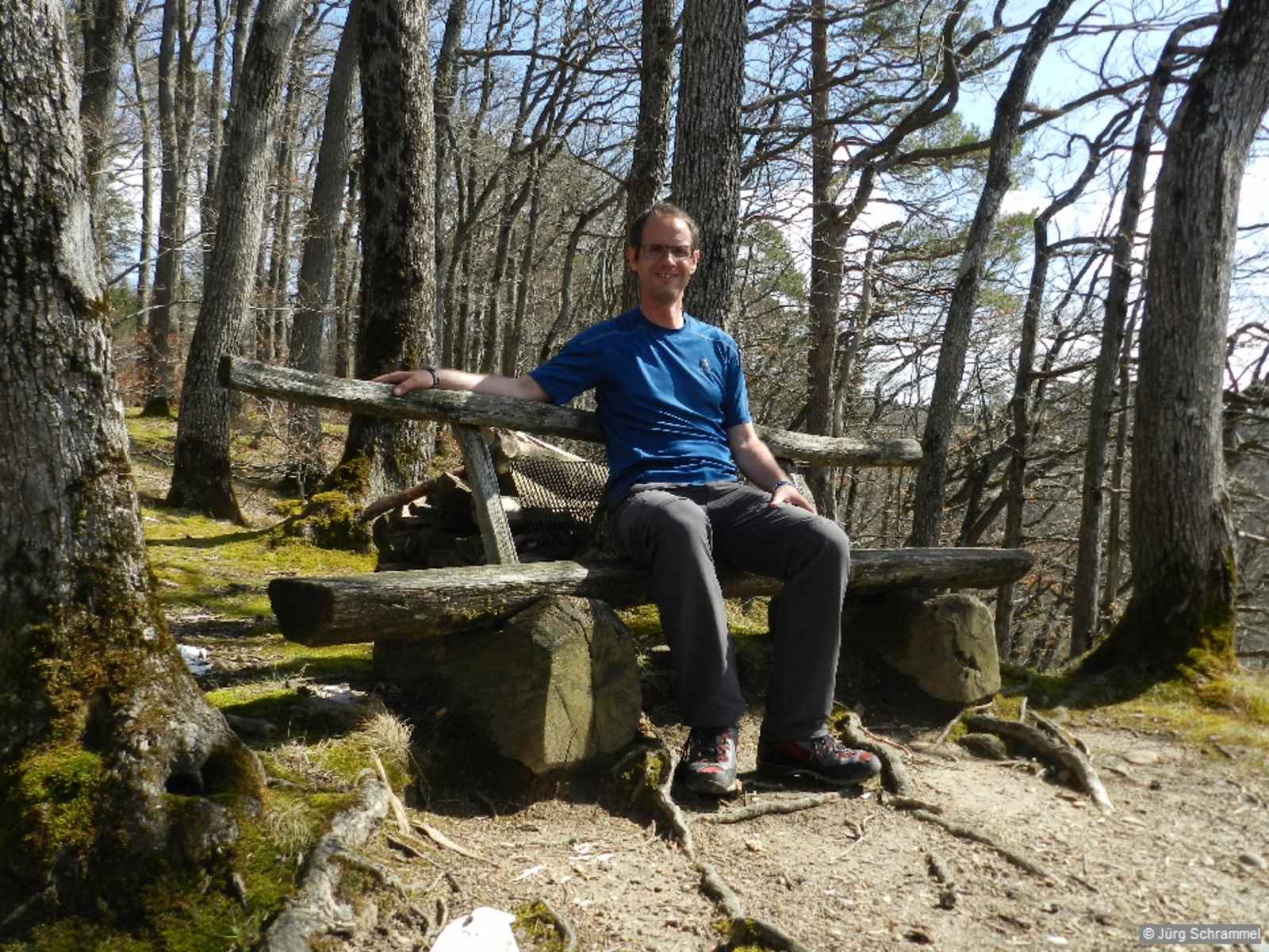 Auf der Spitzflue, 542 m, wartet eine weitere schöne Aussichtsbank. Foto: Jürg Schrammel, Rother Bergverlag