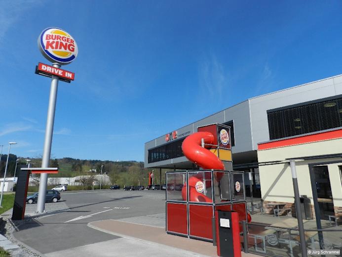 Die Wanderroute nach Rain führt uns vom Bahnhof Hochdorf auf einer stark befahrenen Straße westwärts, bis wir nach einem Fastfood-Restaurant die Ron erreichen. Foto: Jürg Schrammel, Rother Bergverlag