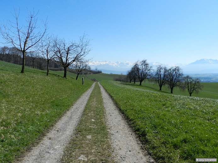 Von dort auf schönen Feldwegen nach Günikon und Hohenrain mit der im 12. Jahrhundert gegründeten Johanniterkommende. Foto: Jürg Schrammel, Rother Bergverlag