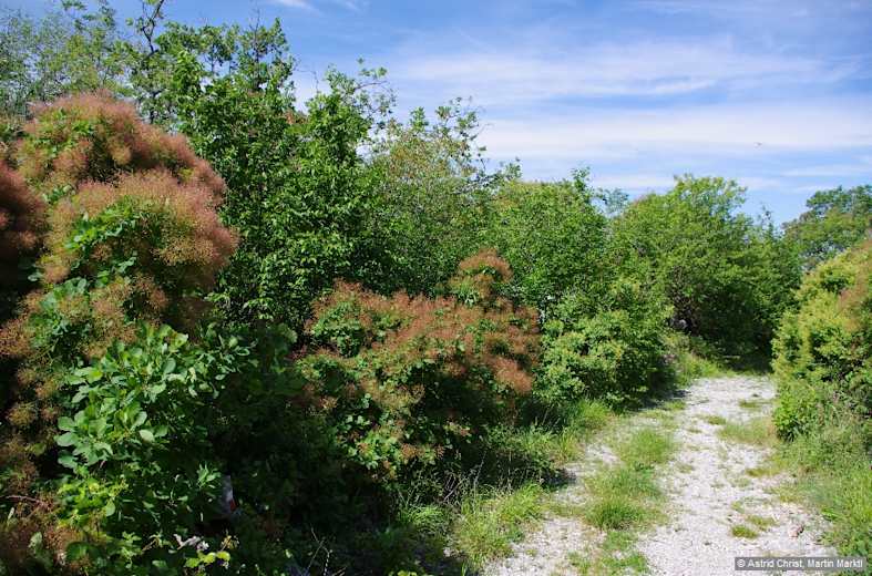 Es wartet eine äußerst vegetationsreiche, bunte Etappe auf uns, die anfangs durch die Laubwälder des nördlichen Monte San Michele führt und später durch Niederwald und ausgedehnte Buschlandschaften verläuft. Foto: Astrid Christ, Martin Marktl, Rother Bergverlag