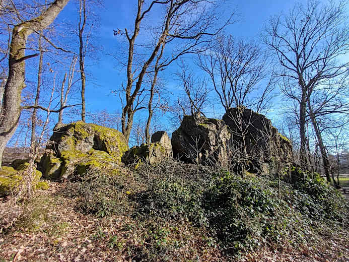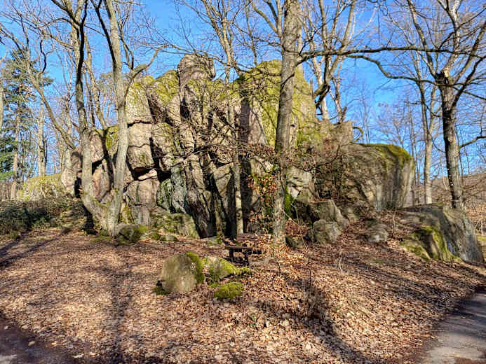 Von der Bachgasse in Bensheim-Auerbach wandert man durch die Weidgasse bis zum Wald und weiter zum Auerbacher Schloss. Man passiert den Parkplatz und geht nach rechts zum ehemaligen Marmorweg am Ortseingang von Hochstädten. Der Weg führt am Gesundbrunnen vorbei und weiter in den Wald. Man kommt zu einer Eremitage und weiter zur Hermann-Schäfer-Eiche. Von hier bietet sich ein schöner Ausblick.