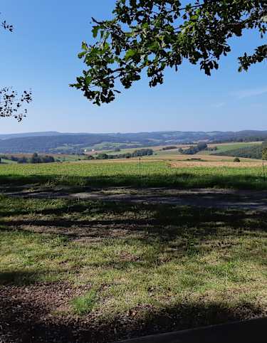 Vom Parkplatz Gustavsruhe unter der Burg wandert man hinauf zum Breuberg. Der Weg führt am Burggraben entlang bis nach links ein Weg abzweigt. Es geht bergab in die Nähe der Gustavsruhe. Hier geht man nach rechts und wandert über Wiesen und am Waldrand entlang. Bei der Schwedenschanze betritt man wieder den Wald.