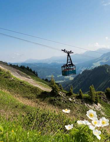 Mit dem Bus erreichbar: Damüls, Bushaltestelle Uga-Seilbahn (Ortsrand); mit der Uga-Seilbahn zur Bergstation.