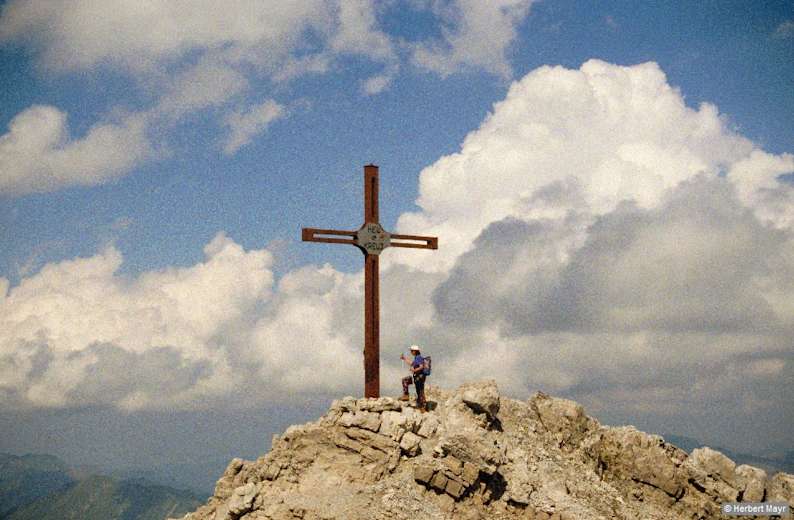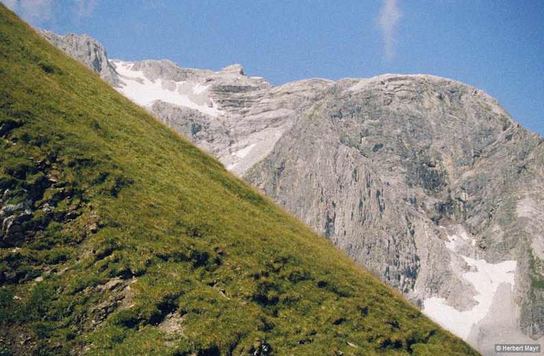 Der wuchtige Hauptdolomitgipfel im nördlichen Lechquellengebirge.Foto: Herbert Mayr, Bergverlag Rother GmbH