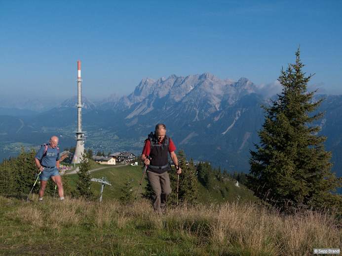 1. Vom Moaralmsee nicht zur Bergstation hinauf, sondern in 1¼ Std. über die Moaralm zur Stanglalm hinab und von dort um 16.30 Uhr (Ende Mai bis Mitte Okt.) nach vorheriger Anmeldung ab 4 Personen (Tel. +43/664 4609548) mit dem Wandertaxi zur Talstation der Seilbahn in Haus (für Sommercard-Besitzer frei).