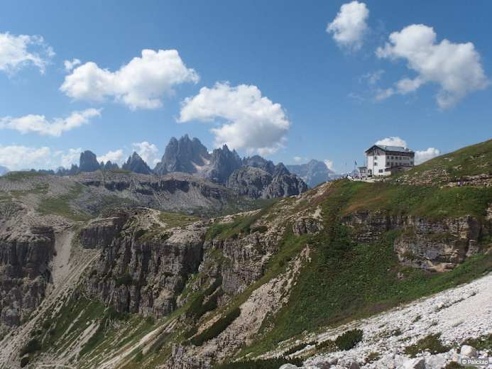 Hinauf zum Rif. Auronzo, 2.320 m. Foto: Palickap / Wikimedia Commons: https://commons.wikimedia.org/wiki/File:Auronzoh%C3%BCtte_02.JPG?uselang=de / CC BY-SA Bildergalerie (3)