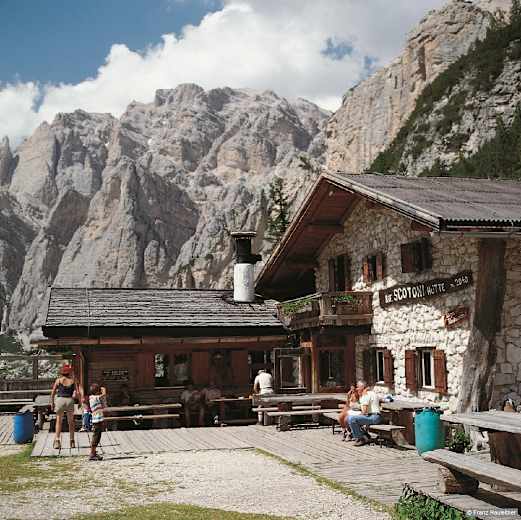 Die Scotonihütte mit den Südwänden des Cunturines. Foto: Franz Hauleitner, Rother Bergverlag GmbH Bildergalerie (2)