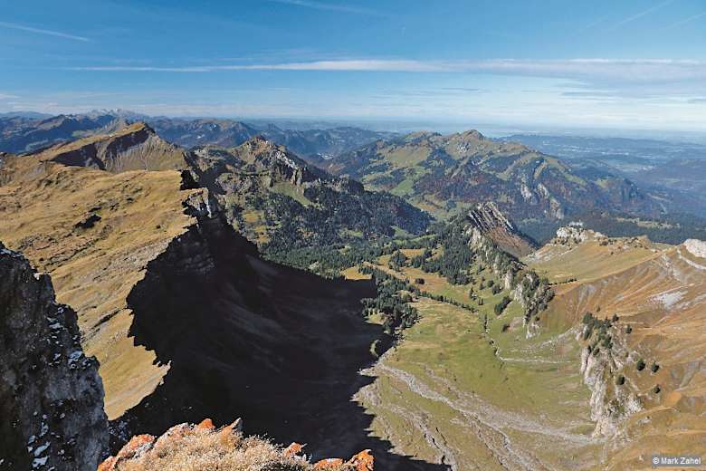 Gen Westen streicht die Iferfluh aus. Die Fernschau reicht bis zum Säntis.Foto: Mark Zahel, Bergverlag Rother GmbH