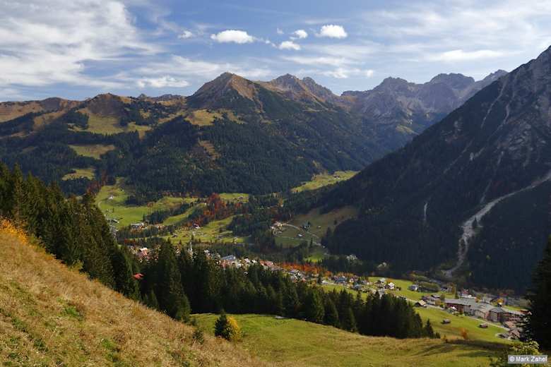Unser Hangweg eröffnet schöne Blicke auf Mittelberg. Foto: Mark Zahel, Bergverlag Rother GmbH
