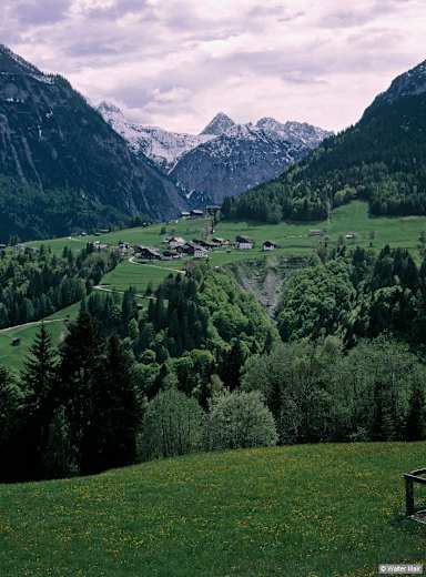 Ab dem Parkplatz unmittelbar nach der 1916 eingeweihten Hubertus-Kapelle führt der Almweg (Fahrweg) leicht steigend vorbei an der unbewirtschafteten Unteren Wolayeralm in den Talschluss, 30 Min. Während rechter Hand sich ein steinüberlagerter Erlenwald ausbreitet (Hochwasser Oktober 2018) beeindrucken links des Weges mächtige Buchen vor steilen Felswänden, die das Tal kulissenhaft umschließen.