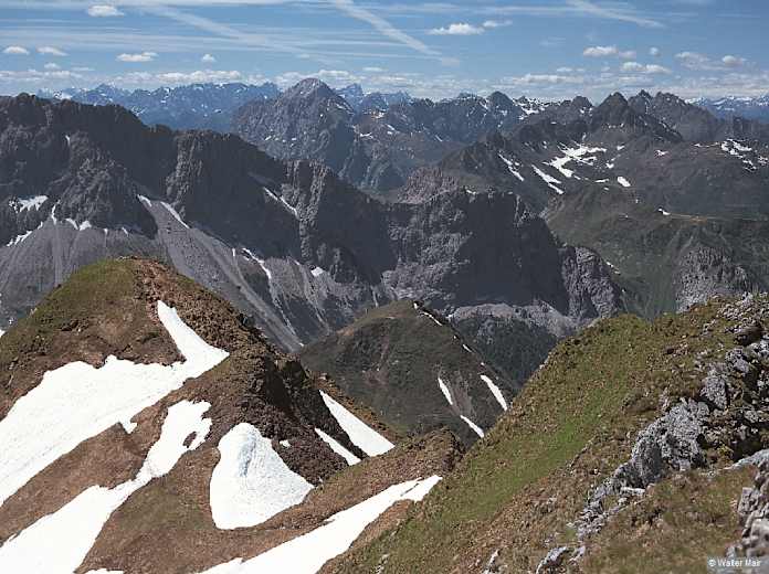 An den Rauchkofel reiht sich ein Meer von Gipfeln und Bergketten. Foto: Walter Mair, Rother Bergverlag