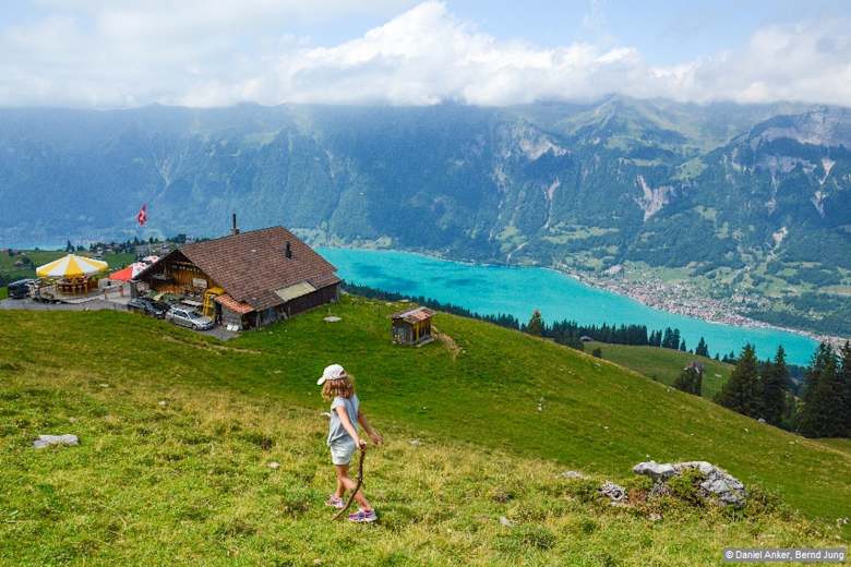 Der Rückweg über das Bergrestaurant Hilten bietet zwar keine Einkehr in ein Nobelhotel, dafür aber auf einer herrlichen Sonnenterrasse mit exklusiver Aussicht auf den Brienzersee. Ein Teil der Wanderung führt über den Schnitzlerweg, entlang dessen über 100 Holzfiguren stehen. Viele von ihnen wurden – und werden auch heute noch – aus den übrig gebliebenen Baumstümpfen nach dem Sturm Lothar im Jahre 1999 gefertigt.