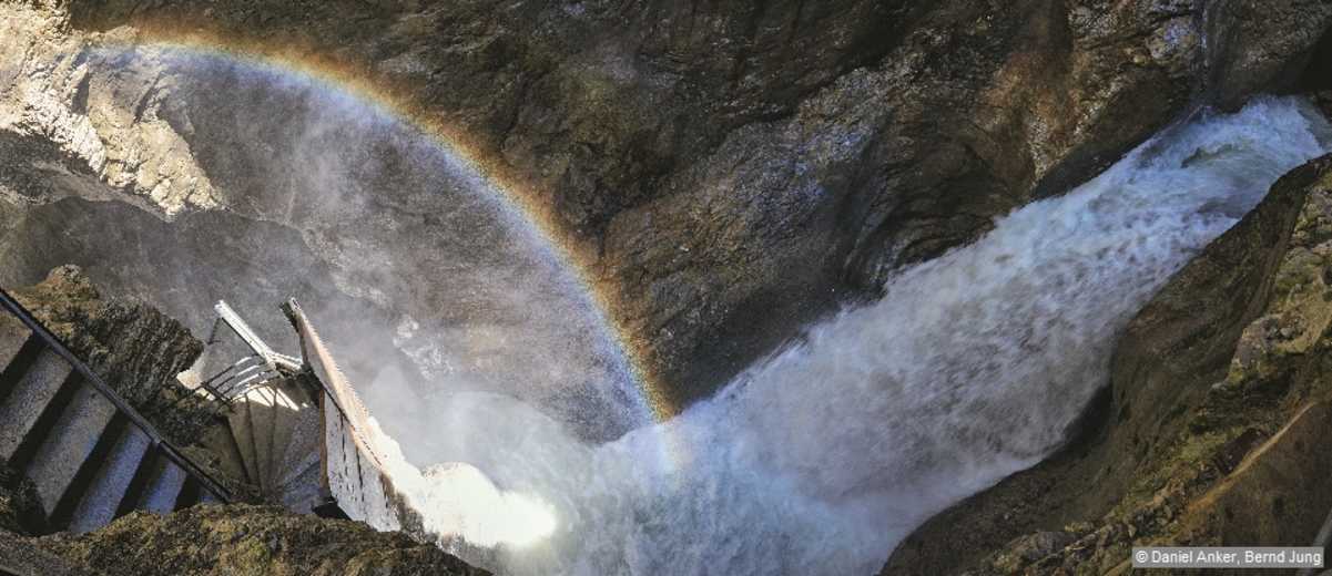 Mit lautem Getöse – in der Rosenlaui-Schlucht. Foto: Daniel Anker und Bernd Jung, Rother Bergverlag