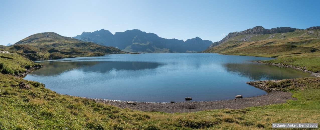 Kurz vor der Tannalp passiert man den Tannensee. Foto: Daniel Anker und Bernd Jung, Rother Bergverlag