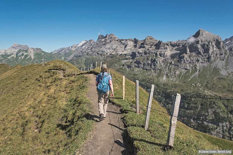 Bei der Kapelle rechts abzweigen und auf dem teilweise ein wenig ausgesetzten Wanderweg sanft abwärts bis zum Hotel und zur Bushaltestelle Engstlenalp.