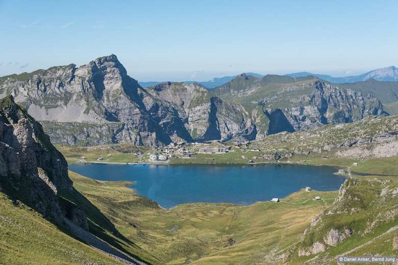 Zwischen Balmeregghorn und Tannalp hat man schöne Blicke auf den Melchsee. Foto: Daniel Anker und Bernd Jung, Rother Bergverlag
