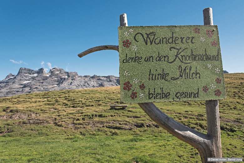 Ein netter Hinweis für den Wanderer. Foto: Daniel Anker und Bernd Jung, Rother Bergverlag Bildergalerie (6)