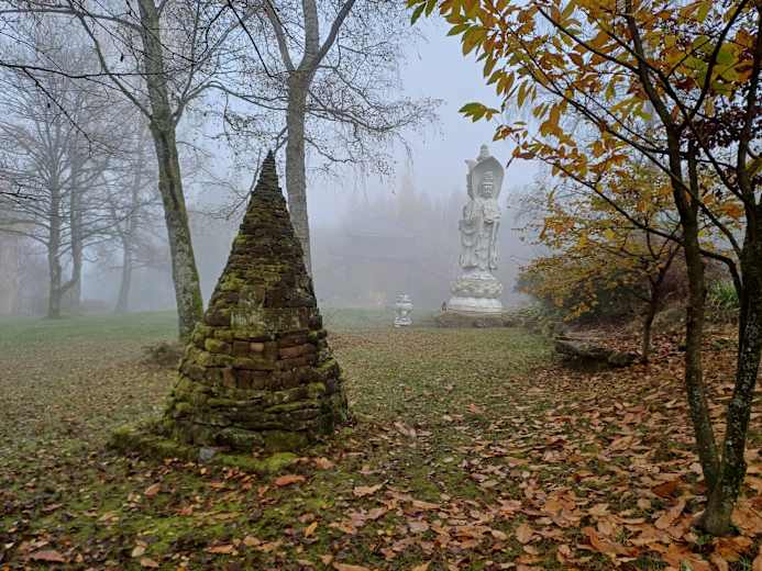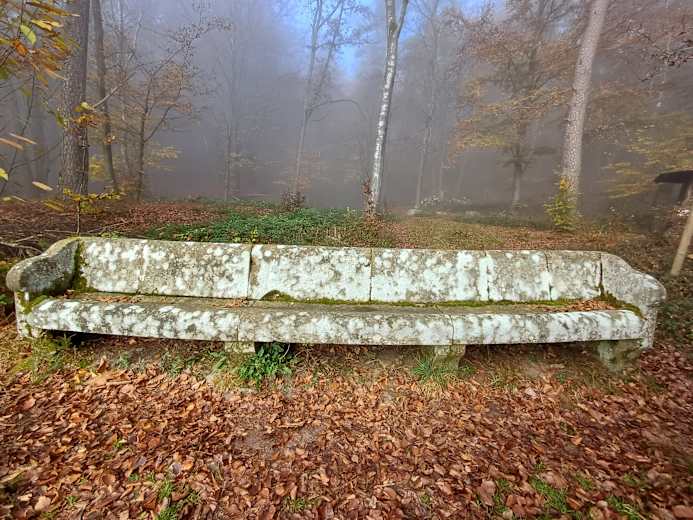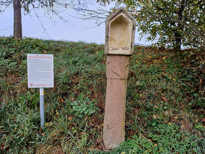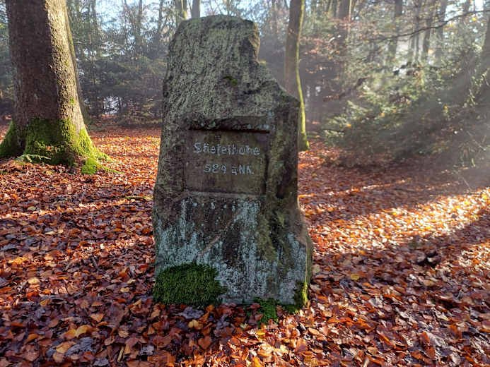 Ein schöner Steig führt vom Stein weg. Man wandert am Waldrand entlang und trifft auf den Kunstwanderweg. Dieser überquert zwei Straße und führt wieder in den Wald bis zu einem buddhistischen Kloster. Hier geht man nach rechts und steigt bergauf zum Hardberg und zur Stiefelhöhe. Zum Schluss wandert man wieder zurück zum Ausgangspunkt bei Unter-Absteinach.