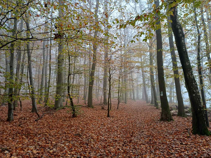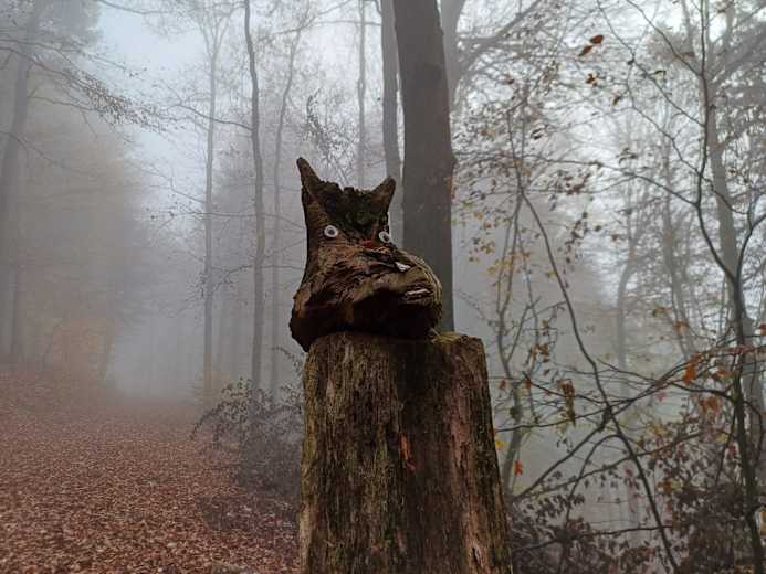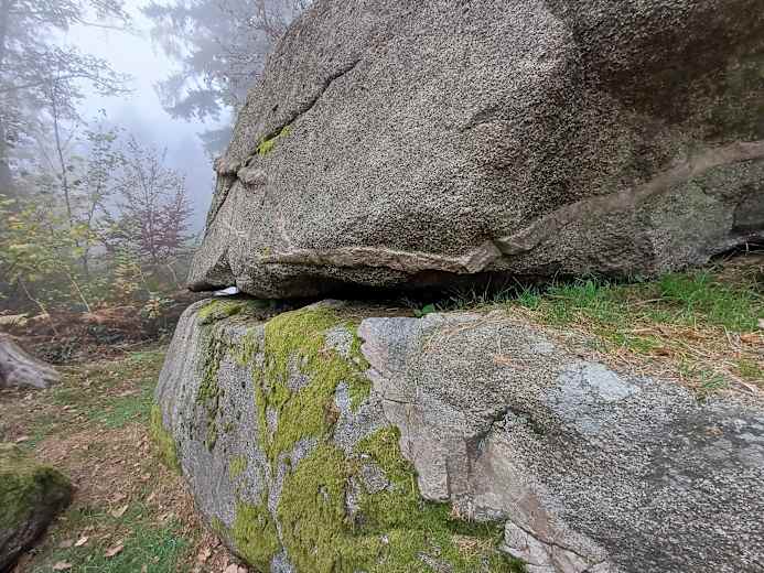 Der Weg führt hinunter zum Teufelsstein. Es geht weiter um den Waldkopf bis zu einer Lichtung. Hier geht man nach links um bei Löhrbach eine Straße zu überqueren. Man geht durch den Ort und wieder im Wald bergauf zu einer Wegteilung. Hier biegt man nach rechts ab und erreicht den Götzenstein.