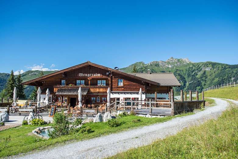 Nach der Erholung gibt es beim Abstieg zur Mittelstation die Möglichkeit zur Einkehr in der Wengeralm (bewirtschaftet), die unterhalb des Spiegelsees geöffnet ist.