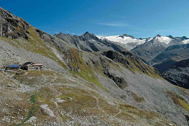 - Eventuell Friesenberghaus, 2.498 m, DAV, Mitte Juni bis Ende September, Tel. +43 676 7497550.