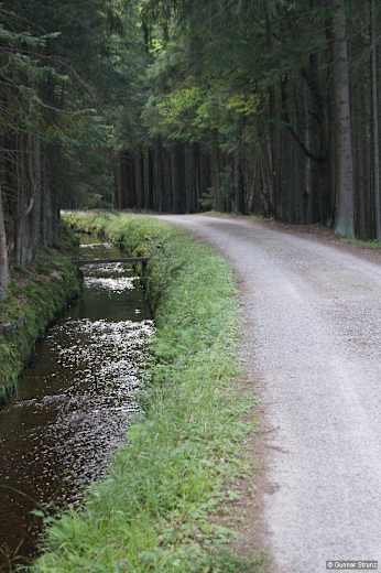 Der Bach wandelt sich bald zu einem Zuflusskanal des Schwarzenberger Hauptkanals. Foto: Gunnar Strunz, Rother Bergverlag