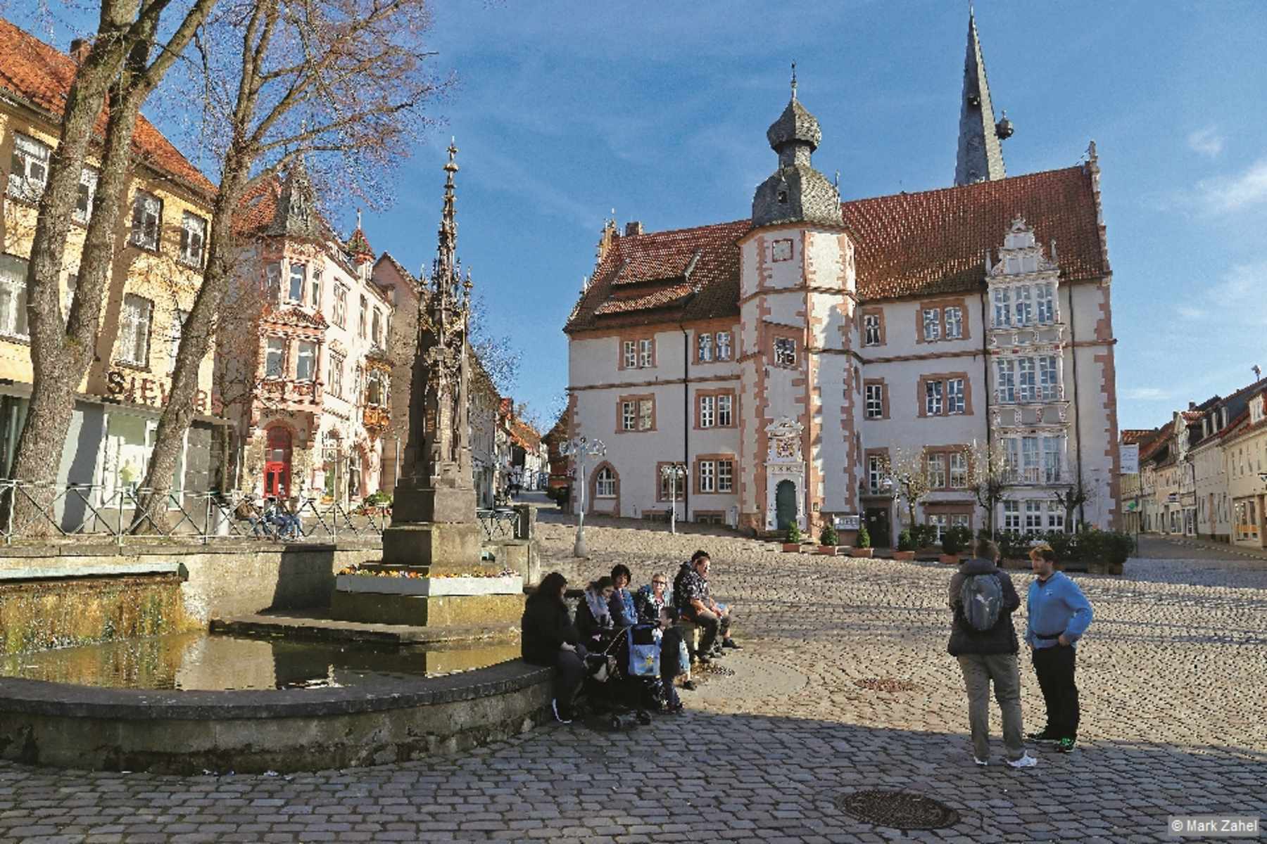 - Der Alfelder Marktplatz mit dem Rathaus. - Foto: Mark Zahel, Rother Bergverlag  - Architektonisches Schmuckstück Alfelds ist die ehemalige Lateinschule. - Foto: Mark Zahel, Rother Bergverlag  - Blick vom Steinberg auf den gegenüberliegenden Alfelder Sindelberg. - Foto: Mark Zahel, Rother Bergverlag  - Das hügelige Relief – hier zwischen Kratzberg und Kuckuck – bietet jede Menge Abwechslung. - Foto: Mark Zahel, Rother Bergverlag  - Röllinghausen liegt leinetalseitig unterm Steinberg. - Foto: Mark Zahel, Rother Bergverlag  - Auf dieser Wanderung schlagen wir quasi einen Bogen um Hörsum. - Foto: Mark Zahel, Rother Bergverlag - Bildergalerie (6)