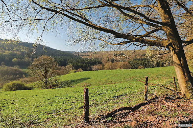 Vom Parkplatz bei Silberborn, 449 m, folgen wir dem ausgezeichnet markierten Weserberglandweg zunächst auf einer Forststraße und biegen nach rund einem Kilometer links auf einen Bohlenweg ins Mecklenbruch ein. In Kürze erreichen wir dort den Beobachtungsturm, ca. 460 m. Noch ein Stück weit schlängelt sich die Route durchs Hochmoor, bevor es im Wald die Richtungswechsel zu beachten gilt – der Weserberglandweg schwenkt in Grundrichtung Nordost. Nach einer langen Geraden verzweigt sich der Forstweg, 477 m. Hier rechts abwärts und eine halbe Stunde später bei einem weiteren Abzweig scharf rechts. Ein kurzes Pfadstück bringt uns in den Grund des Hellentals zu einem Rastplatz, ca. 370 m. Durch das idyllische Wiesenhochtal wandert es sich nun noch eine ganze Weile beschaulich hinaus bis in die abgeschiedene Ortschaft Hellental, 282 m, wo der Lönskrug zur Einkehr lädt.