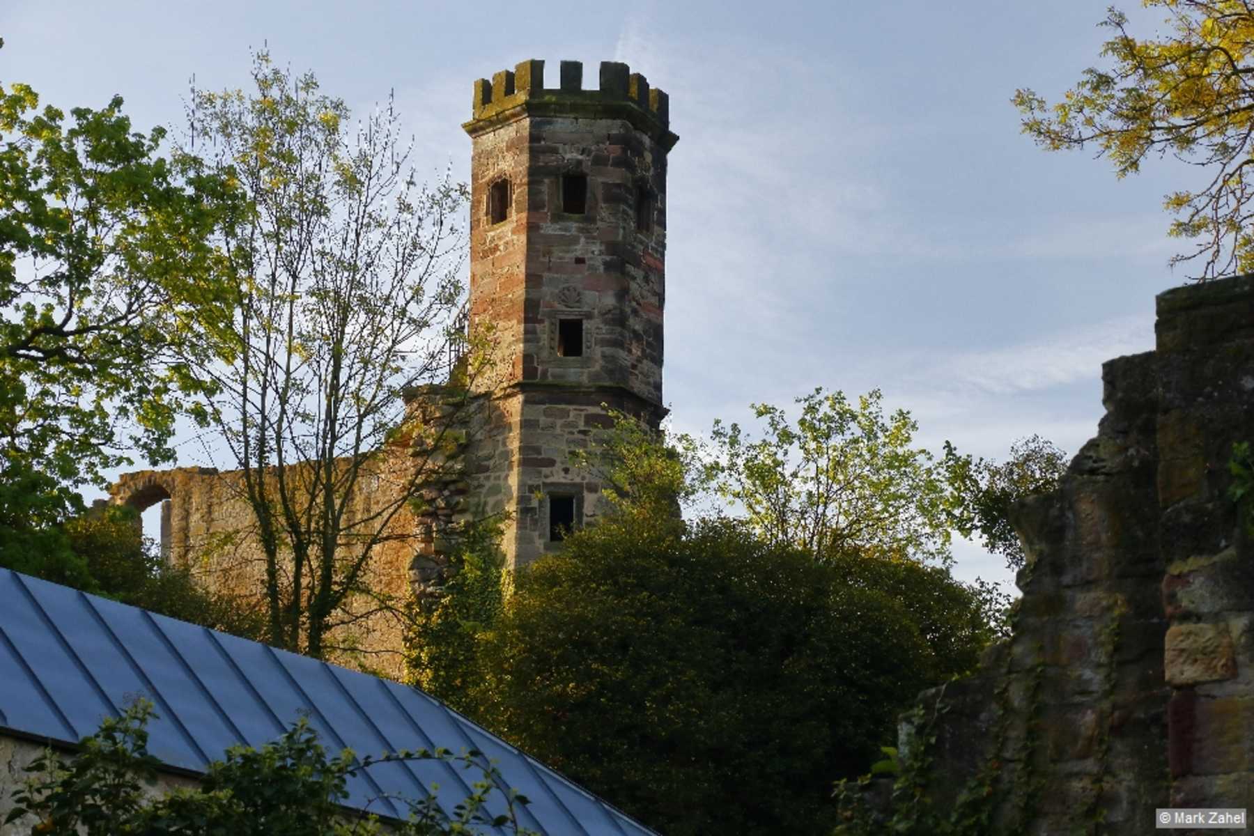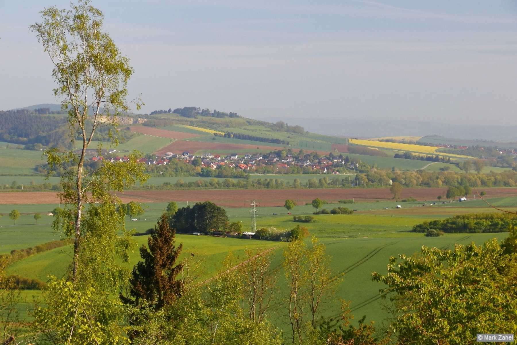 Vom Bahnhof Nörten-Hardenberg, 135 m, in die Göttinger Straße und bei der Kirche rechts in die Burgstraße. Man kommt zu einem Parkplatz unterhalb des Festungshügels und steigt rasch zur Burg Hardenberg, ca. 170 m, an. Die Ruine kann auch umrundet werden; Besichtigungen hingegen nur im Rahmen einer Führung. Auf einem ansteigenden Waldweg geht es weiter und dann links haltend zum Warteturm, der leider nicht mehr zugänglich ist. Noch etwas nach Norden ausholend wandern wir auf verwinkeltem Kurs durch die Feldmark (im Detail mehrere Varianten möglich) und nähern uns damit von oben der schön gelegenen Ortschaft Bishausen, ca. 160 m, im Tal des Beverbachs.