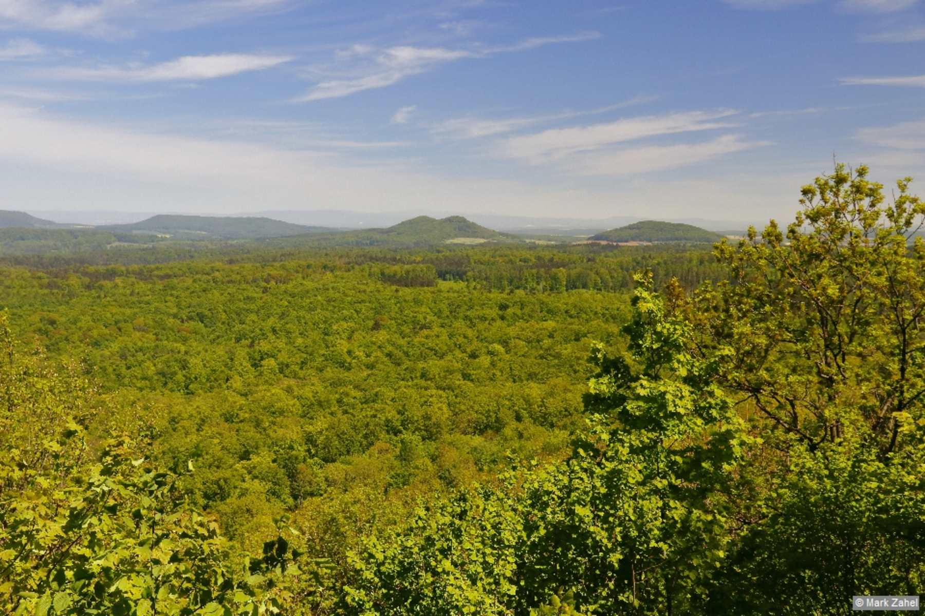 In Groß Schneen marschieren wir am Kampweg aufwärts, halten uns vor dem Wald rechts (Hinweis „Bocksbühl“) und bei der nächsten Gabelung an der Lumpensammlerbuche links. Der Forstweg führt beständig bergauf, ehe man nach einer markanten Rechtskurve links abzweigt und das letzte Stück zum Gipfel des Bocksbühl, 437 m, bewältigt. Von der Grillhütte öffnet sich das Panorama über weite Teile des Göttinger Landes und Eichsfeldes bis zum Harz.