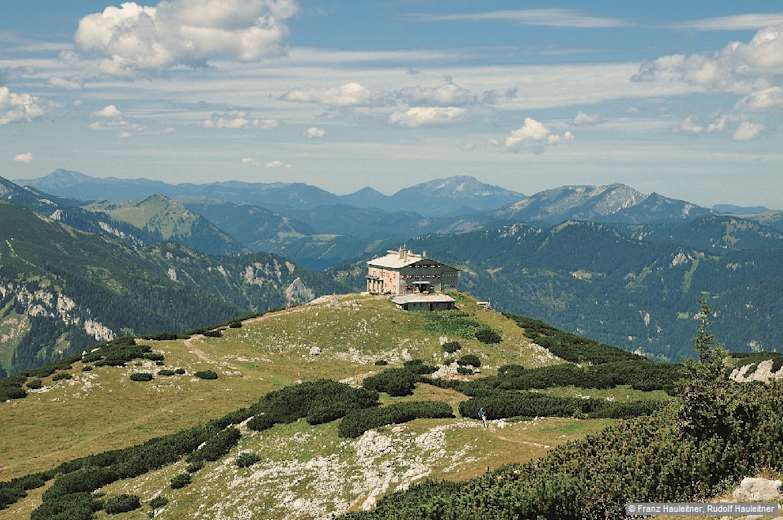 Das isoliert stehende Habsburghaus vor dem markanten Ötscher. Foto: Franz Hauleitner, Rudolf Hauleitner, Rother Bergverlag