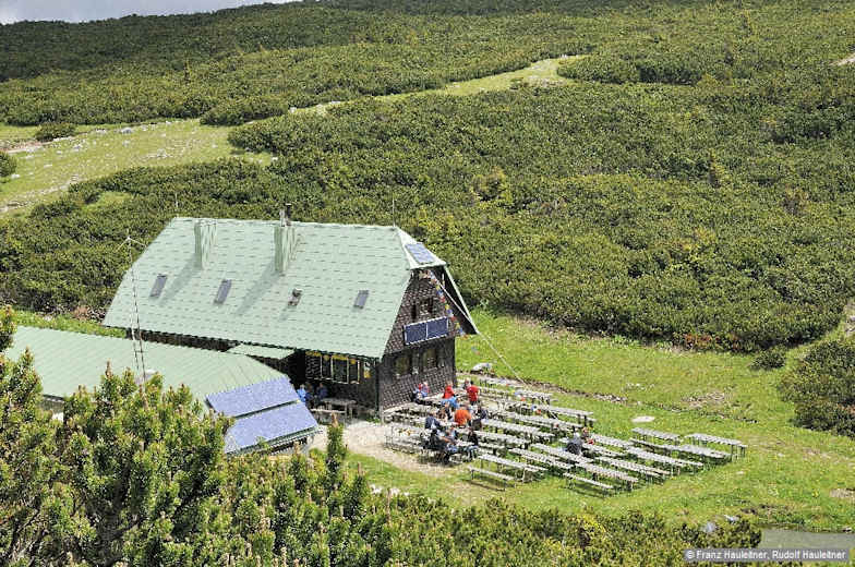 - Habsburghaus (ÖAV, 36 B., 65 L., geöffnet 25./30. Mai–15. Okt., kein Ruhetag, offener Winterraum mit 8 L.; Tel. +43/2665 219, +43/650 7258593 u. +43/664 3749340, www.habsburghaus.gebirgsverein.at)