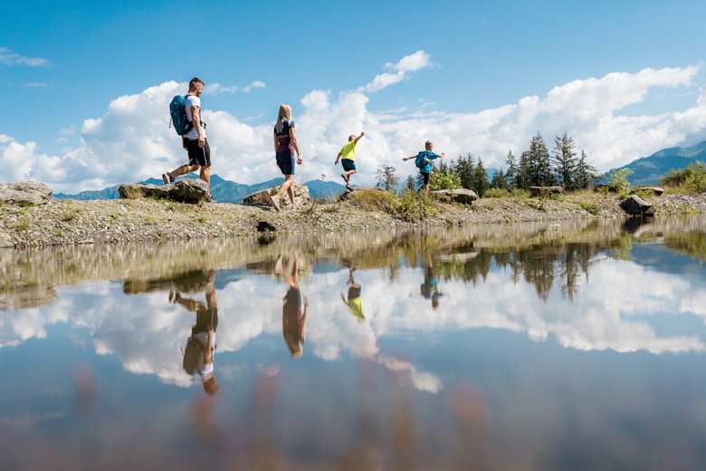 Wunderschöne Wanderung auf der Schmittenhöhe bei Zell am See, die gleich zu drei Bergseen und zum Zeller See führt. Die Auffahrt erfolgt mit der Seilbahn und danach führt der Weg praktisch nur abwärts. Entlang des Weges findet man interessante Kunstwerke, die eine perfekte Kombination aus Natur und Kunst darstellen. Die Aussicht auf die umliegende Bergwelt ist dabei immer präsent.