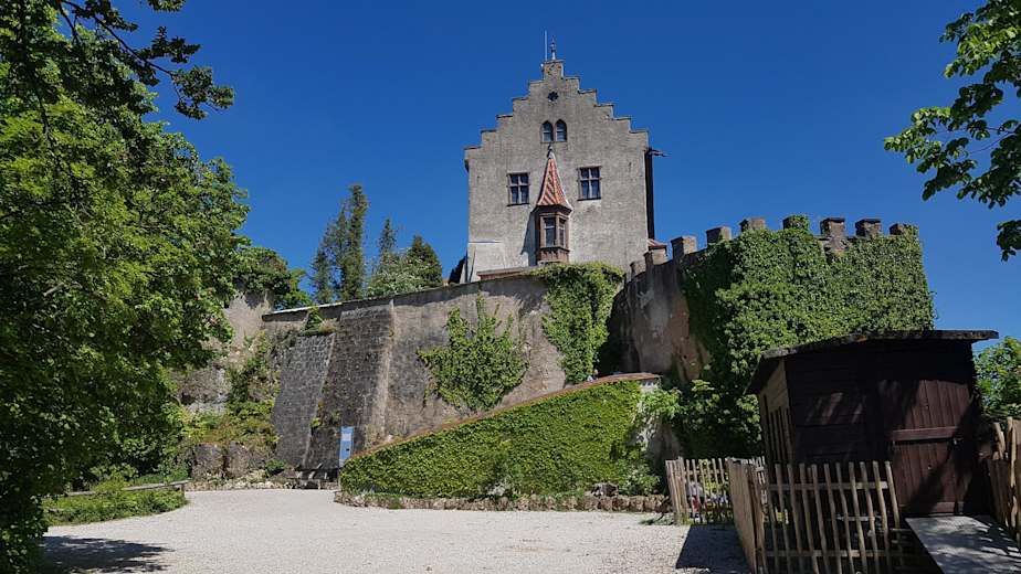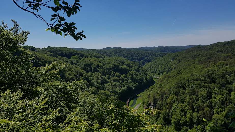 Der kleine Pfad zum Keltenwall ist teils etwas zugewachsen, führt aber direkt bis zum höchsten Punkt des Schloßbergs - mit großen Infotafeln zur Besiedlungsgeschichte während der Keltenzeit. Von hier geht ein etwas größerer Pfad in südlicher Richtung wieder hinab zum Forstweg Richtung Leutzdorf. An dem folgenden Wegedreieck links halten, bis nach weiteren gut 100 m wieder ein Waldpfad links in den Wald hineinführt – zur Esperhöhle. Der Waldpfad führt weiter Richtung Leutzdorf und mündet schließlich in einen Schotterweg, diesem gut 200 m Richtung Leutzdorf folgen, bis zur nächsten spitzen Weggabelung. Hier scharf nach links abzweigen und auf -unmarkiertem- Wirtschaftsweg gut 300 m weiter. Dann öffnet sich nach rechts der Blick auf eine Wiese – auf Pfadspuren scharf nach rechts hoch folgen, bis zu einem weiteren, höher gelegenen Wirtschaftsweg, der von hier in südlicher Richtung nach Leutzdorf führt. Gleich bei den ersten Häusern des Ortes zweigt wieder ein markierter Wanderweg („IFS“) nach links ab, diesem nach links ansteigend folgen. Nach gut 200 m ist die waldige Kuppe des Hügels (nördlich) hinter Leutzdorf erreicht und es beginnt der Abstieg auf dem „IFS“ Wanderweg wieder ganz hinunter ins Wiesenttal bis zur Sachsenmühle.