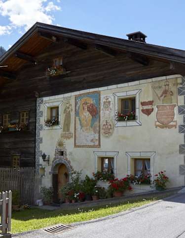 Anschließend geht man am Steig retour und folgt dem Weg aufwärts bis zur Rotwegkapelle. Ab hier geht es abwärts über die Forststraße Nr. 17 bis zur Abzweigung Richtung Weiler Wiese und weiter entlang des Wandrandes bis zur Hauptstraße. Von hier geht man bei der Abzweigung Wiese hinauf bis zum Hotel Edelweiß Schlösse und danach rechts durch die Weiler Stiegenwahl - Höfen - Tschatscah und Bild bis zurück nach Kappl Dorf.