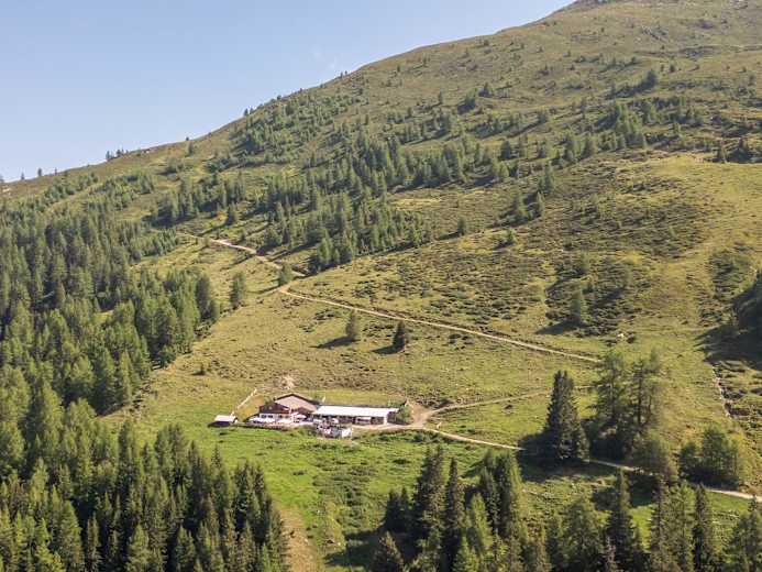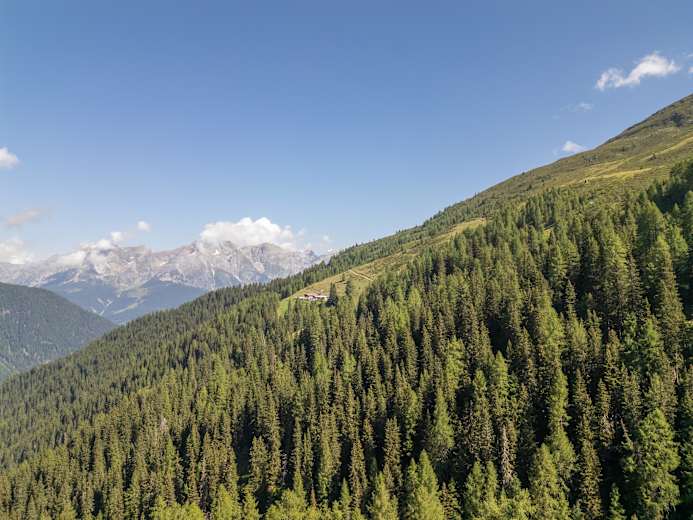 Hier, bei der kleinen Kapelle, beginnt nun die eigentlichen Tour: Es geht weiter zur wildromantischen – leider aufgelassenen – Giggler Alm und taleinwärts durch romantische Lärchenwälder. Man quert den Gigglbach und erreicht über markierte Steige nach etwa 1,25 Stunden das Etappenziel: die Ascherhütte auf 2.256 m.