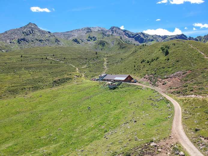 Ab dem Wegkreuz im Bergli geht es wieder talabwärts bis zur Kreuzung, ab der es wieder bergauf geht, zur einsamen, aber prächtigen Stielalpe auf 2.050 m. Entlang der Flanke geht es über den Stielwald weiter ins Flathtal, wo schon der letzte Aufstieg des Tages bis zur Gamperthun Alpe auf 2.070 m wartet. Die Alm ist bewirtschaftet und lädt zu einer wohlverdienten Rast ein.
