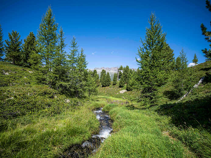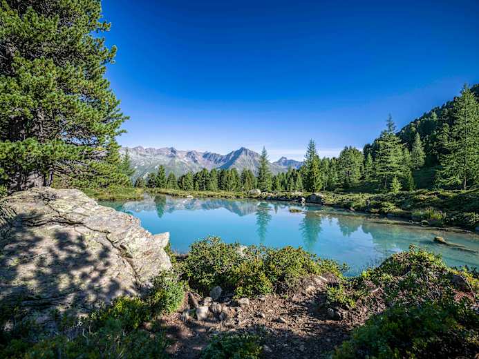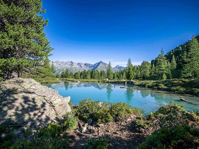 Vom Innerbergli kann man einen Abstecher zum türkisblauen Berglisee machen, den man nach kurzer Wegstrecke erreichen kann. Vom Innerbergli erreicht man nach einem ausgedehnten Abstieg diebewirtschaftete Larein Alpe auf 1.860 m, auf der es eine Varietät aus hausgemachten und heimischen Köstlichkeitenzum Schlemmen gibt. Von dort gelangt man nach einem weiteren Abstieg zum Grillteich Stafali und begeht zum Ausklang den Galtürer Höhenweg.