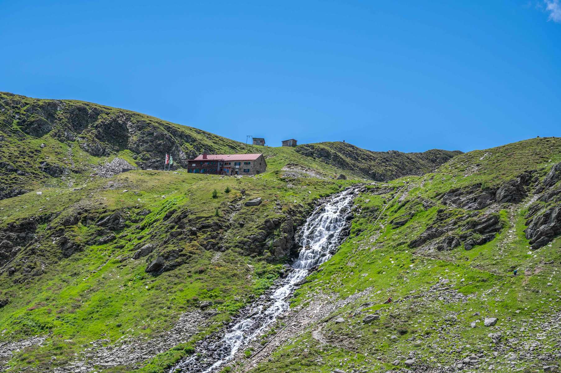 Über die Scharte geht es auf den Nordhang der Gebirgskette. Der Abstieg führt zu den romantischen Schmalzgrubenseen, deren Ufer zu einer kurzen Rast und zum Krafttanken einladen. Ab den Seen folgt man dem „Rifflerweg“ weiter bergab Richtung Etappenziel. Die Edmund-Graf-Hütte auf 2.375 m und ihr kleiner See liegen angeschmiegt an den Felsen der Ausläufer des Hohen Rifflers.
